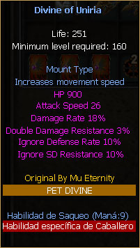 Aumenta la velocidad de movimiento, defensa y atributos básicos del personaje. Objeto de rareza divina.