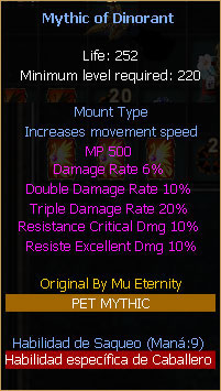 Un artefacto legendario nacido de las antiguas batallas del continente. Este cuerno mítico invoca al Dinorant Mítico, una bestia forjada para la guerra.